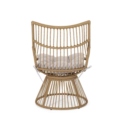 Bring ultimate luxury to your outdoor space with a chat set of bohemian-inspired aesthetics. Featuring chairs with a refined high back design combined with a Papasan base, our chat set will be an excellent addition to any backyard or patio area. These lounge chairs are perfectly paired with a cage frame side table, turning any outdoor space into a spectacular oasis. From tufted water-resistant cushions to its intricate wicker-wrapped finish, this chat set offers hours of relaxation for you and your family.