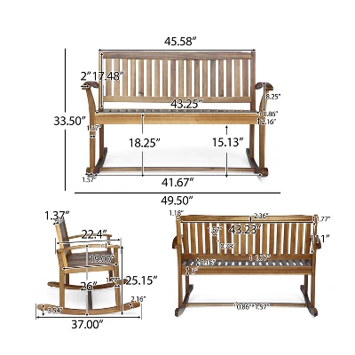 - DIMENSIONS: Choose an accessory that is the perfect size for you and your furniture. This rocking bench is 49.50″ W x 37.00″ D x 33.50″ H. You will love how much your space can transform with the simple addition of this charming rocking bench.