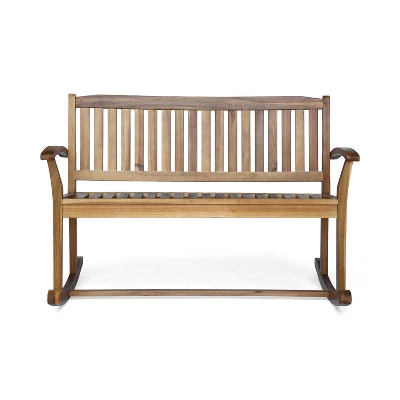 Take a unique and welcoming approach to patio design with our stylish rocking outdoor loveseat. Whether you gravitate toward an old-fashioned, traditional, or rustic aesthetic, this loveseat is sure to fit the bill. It’s as timeless as it is beautiful. Equally well-suited for indoor and outdoor use, this two-seater rocker is earthy, charming, and versatile. Made of durable acacia wood, this loveseat is both well-made and beautifully natural. Embrace a relaxing and laid-back vibe on your patio with our rocking outdoor loveseat.