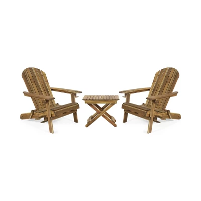 Enjoy a brisk morning with a steaming cup of coffee or stretch out with a loved one in front of a lovely sunset. Our folding Adirondack chat set is a perfect way to sit back in the great outdoors and take in the beauty of nature. Made with rich acacia wood, this chat set brings a beautiful rustic vibe to your backyard or patio space while also offering impressive functions with its folding features and cup holders. This iconic design makes every outdoor space a charming one.