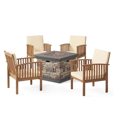 - INCLUDED FIRE PIT FOR COZY GATHERINGS: The set comes with a lightweight concrete and steel fire pit, perfect for keeping warm on cool evenings. Rocks are included for added aesthetic, creating a cozy, inviting atmosphere for any gathering.