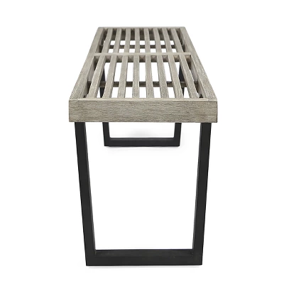- RUSTIC INDUSTRIAL: Our bench incorporates a powder-coated sled legs with sleek wooden slats to create an understated modern industrial design. Featuring gorgeous rustic influences, this bench offers a homey aesthetic to any home.