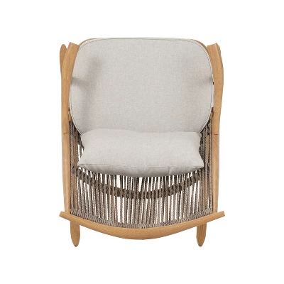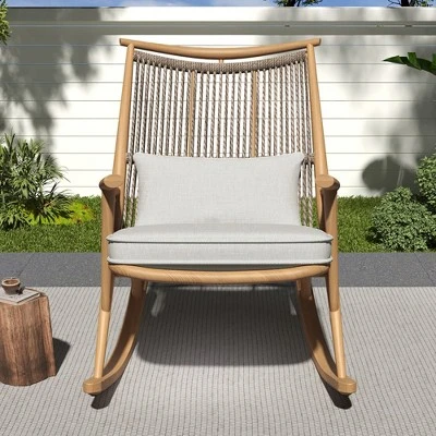- PADDED CUSHION SET INCLUDED: Includes both seat and back cushions in a light gray, fade-resistant fabric. The cushions provide plush comfort and visual softness, complementing the wood-toned frame and adding a cozy, inviting feel to your outdoor seating area.