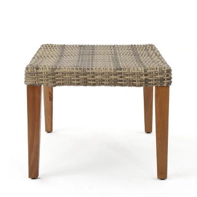 Transform your outdoor space with our cozy, transitional-style wicker ottoman. Resting on solid acacia wood legs, this piece embodies laid-back sophistication. Its versatile design harmonizes beautifully with any decor and invites a warm ambiance to unwind or entertain. Enjoy the blissful comfort and elegant functionality this ottoman brings to your home sanctuary.