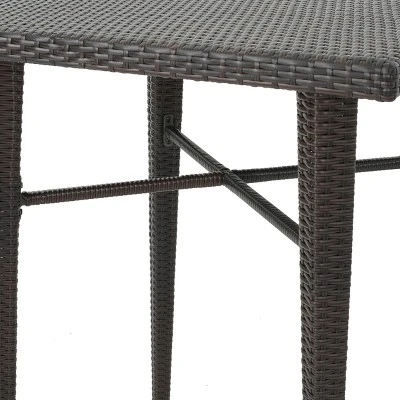 Create a beautiful corner outdoors with this elegant bar set. Featuring the highest-quality rattan and iron construction this set is built to hold up to all the weather brings and still look great for years to come. This purchase is sure to become a member of the family.