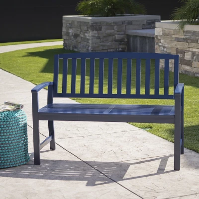 Make your outdoor decor feel warm and inviting with this wood bench. This outdoor bench will brighten up any patio or backyard. The bench is made from durable acacia wood for a long-lasting piece you can enjoy for many years. Decorate the wood bench with accent pillows to create a cozy space in your home.