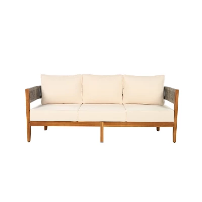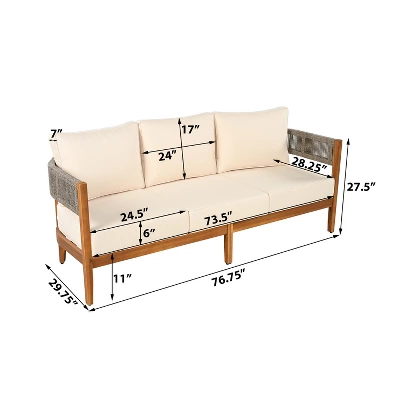 - ACACIA WOOD: Made from solid acacia wood, this sofa offers durability, natural beauty, and weather resistance. It withstands outdoor elements while maintaining a sleek, modern appearance without darkening over time.