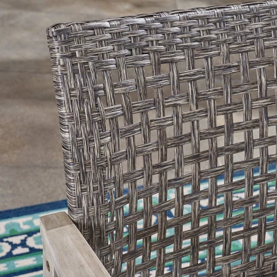 These gorgeous outdoor club chairs combine the look of a real antique with the comfort and durability of a contemporary chair. Made from top-quality wicker laid atop an acacia wood and iron construction, these chairs are perfect for long afternoons outside and will last for years and years. Assembly is required.