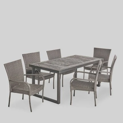 For the aspiring homemaker, one’s dining table is akin to an artist’s canvas. This Christopher Knight Home Mayhill 7pc Acacia Wood and Wicker Dining Set will transform your backyard patio or dining area into your own personal veranda, making every night a special occasion. Six comfortable wicker chairs surround an exquisitely-constructed acacia wood table. Love your neighbor, share a meal, create memories that will last a lifetime with this Christopher Knight Home Mayhill 7pc Acacia Wood and Wicker Dining Set.