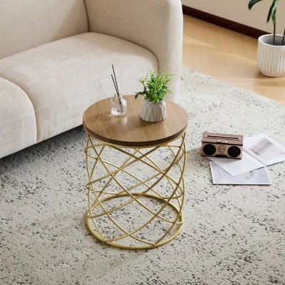 Add artistic charm and everyday function to your home with this eye-catching Patio End Table for Outside and Indoor Use. Featuring a unique birdcage-style metal frame and a smooth wooden top, this Outdoor End Table for Patio brings contemporary character and versatile usability to any space. Its compact size and lightweight design make it easy to reposition from room to patio, while the no-assembly convenience adds instant style with zero effort.