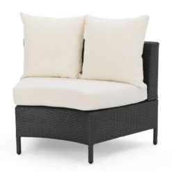 Christopher Knight Home Harper Outdoor Wicker Curved 76″ W Loveseat Sectional With Cushions