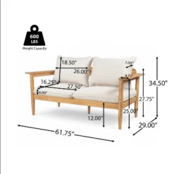 Christopher Knight Home Mistvale 67″ Modern Acacia Wood Outdoor Sofa With Cushions