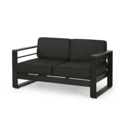 Christopher Knight Home Maya Bay Aluminum Outdoor Patio Loveseat With Cushions Black/Dark Gray