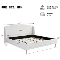 Christopher Knight Home Nicky Boucle Upholstered Platform Bed With Wingback Headboard, White