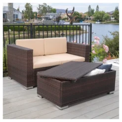 Murano 2pc Aluminum Patio Chat Set With Cushions – Brown – Christopher Knight Home