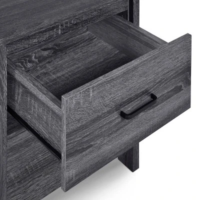 FAUX WOOD: Made with faux wood, this nightstand set blends together a beautiful wood look with the strength of real wood. Resistant to moisture, this material provides a smooth and refined finish to any room.
